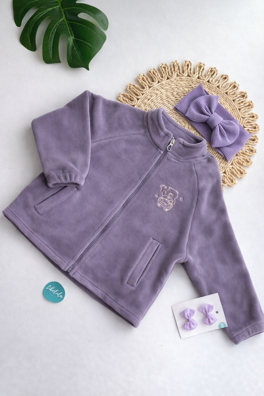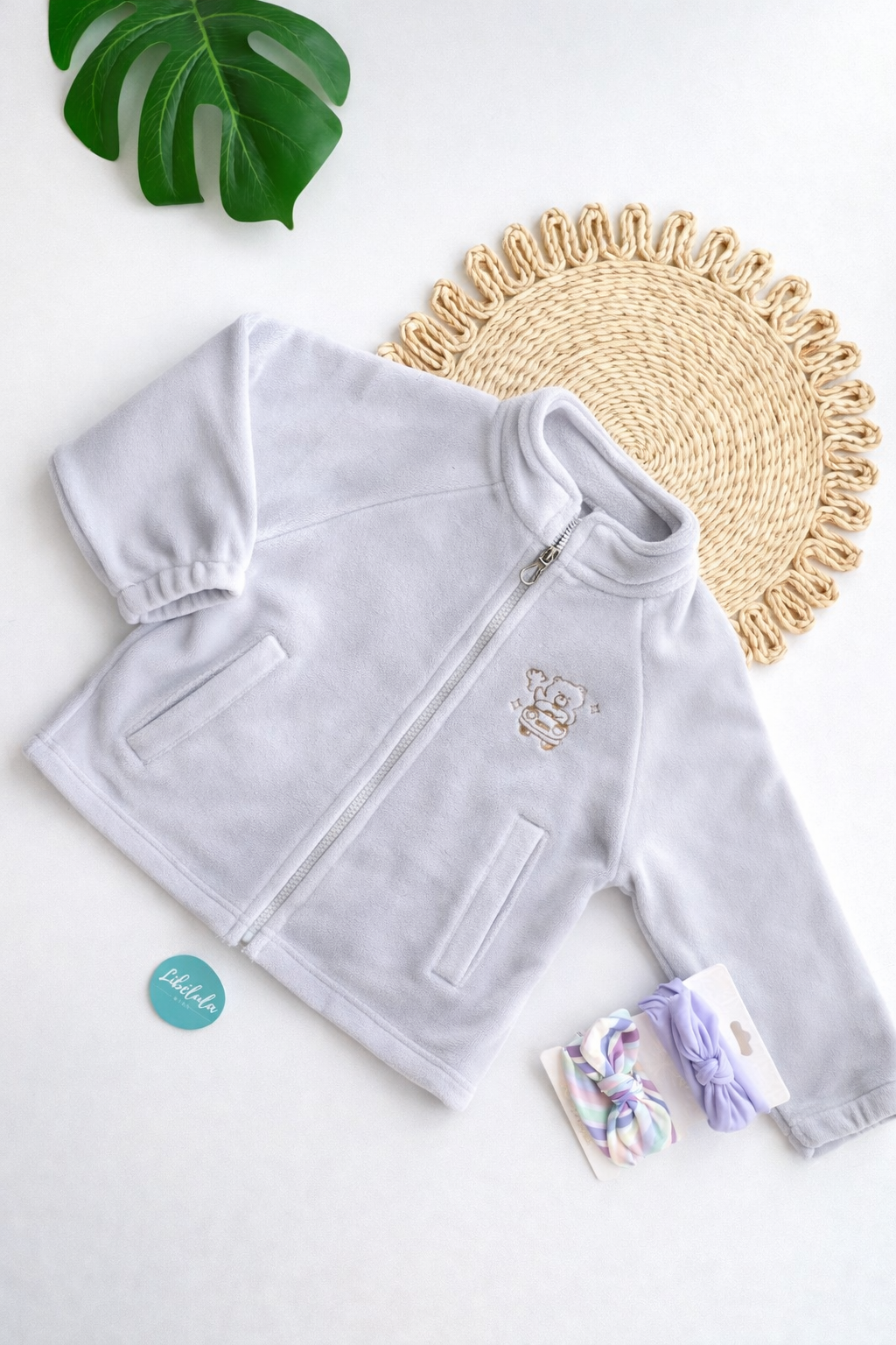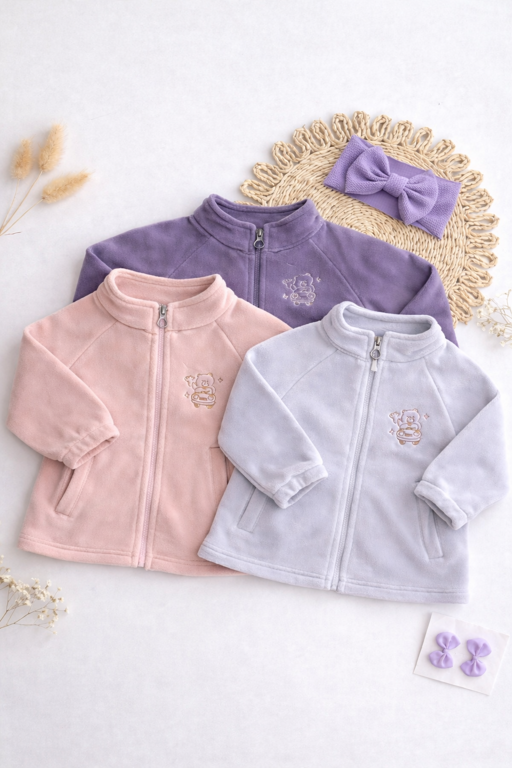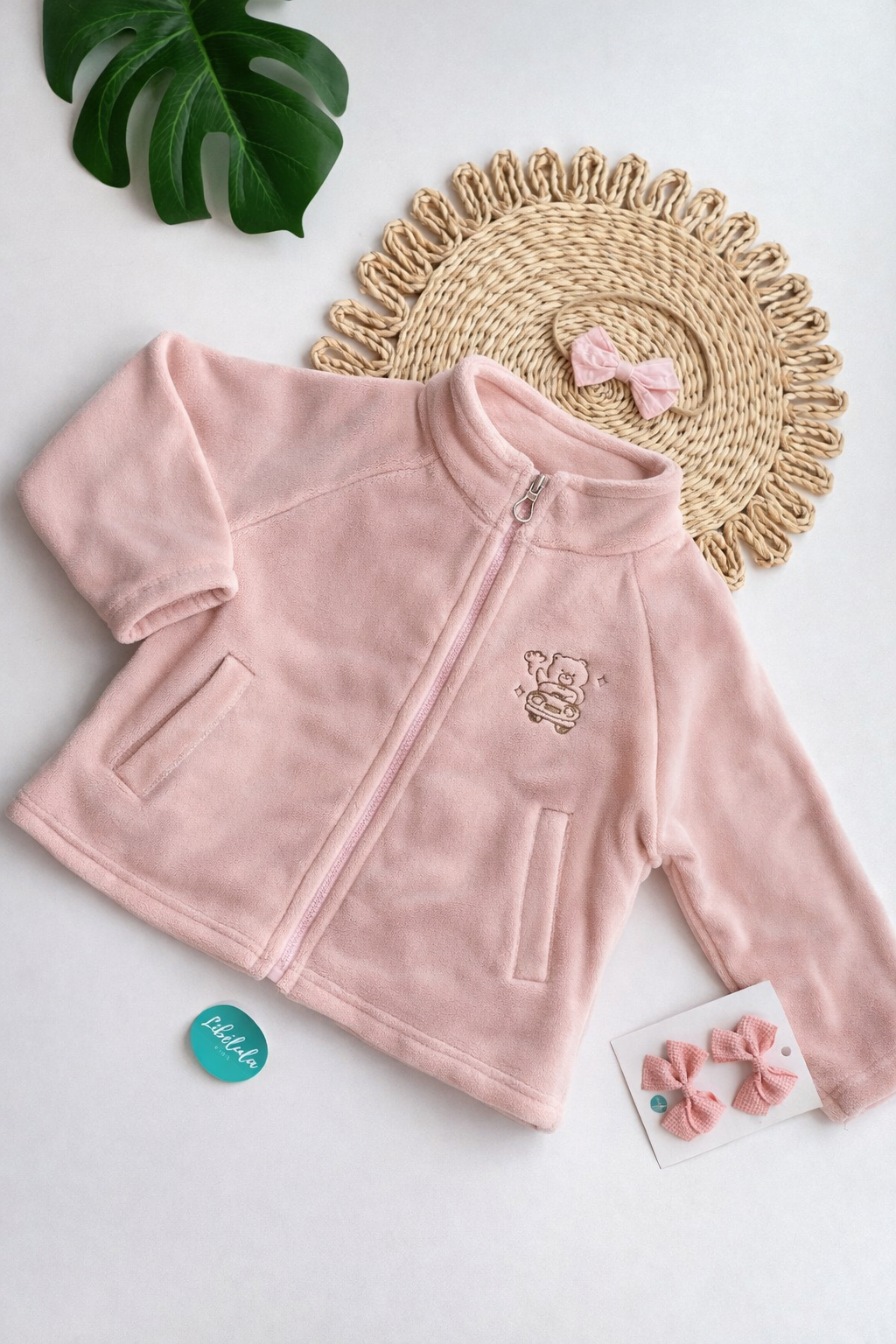 Cuenta con cierre frontal completo, cuello alto para mayor protección y delicado bordado frontal que le da un toque tierno y especial. Sus bolsillos laterales lo hacen práctico y perfecto para el día a día.