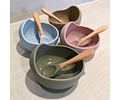 Incluye: un plato y un bol con ventosa, y cuchara silicona y bambú