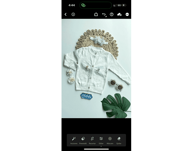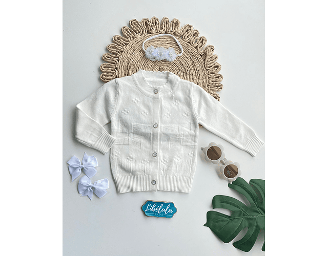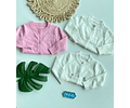Hermoso chaleco de lanilla hipoalérgica importado de brasil , con lindos botones en nácar y aplique de flores en satin color palo de rosa.