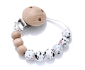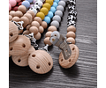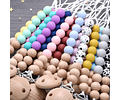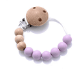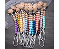 El portachupete de silicona libre de BPA es ideal para que el chupete no caiga al suelo. Incluye clip para engancharlo a la ropa, y cordón para afirmar el chupete.
